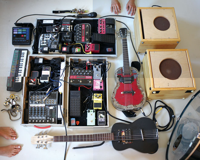 If you haven’t heard, Buke & Gase are a band of two scruffy young instrument builders who happen to rock instruments of the same respective names. Also they are a boy and a girl with the same first name. Confused yet? Ok let’s get this straight. The Buke is a baritone ukulele played by Arone Dyer, who also sings, and the Gase is a guitar/bass hybrid (formerly called the Gass, but that didn’t read well enough with the general public) constructed and played through (also) home-made amps by Aron Sanchez. The duo also plays their own percussion live with their feet. These two first impressed me when they were part of a math-rock band called Hominid, and they’ve taken the complex contra-rhythmic style to the next level with the warm, fuzzy, acoustic stylings of Buke & Gase. Their new digital-only EP Function Falls drops today on Brassland Records. Stream it over at wired.com or buy it on bandcamp.